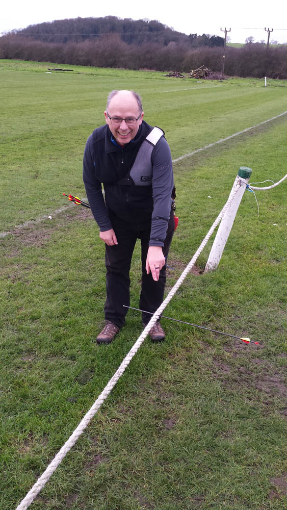 Meanwhile, out on the range Steve was bemoaning the fact that his arrow had missed the target (again! I hear you cry) and was searching for the offending pointy stick in the grass/mud when David shouts, it’s over here. No wonder the detector couldn’t find it…